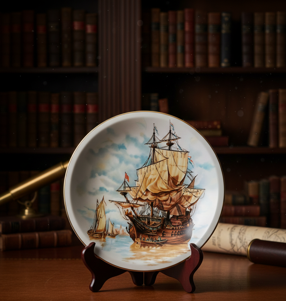 Leonardo Collection porcelain ship wall plaques with gold trim