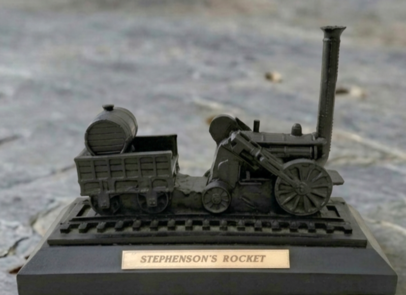 Stephenson's Rocket made from British coal sculpture