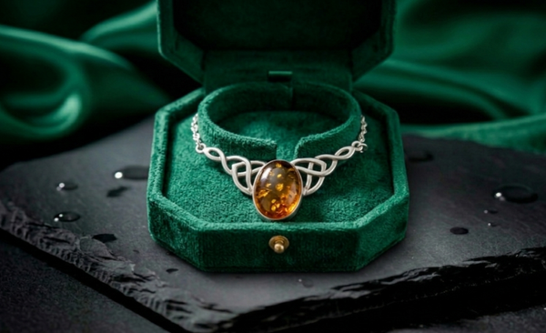 1990s 925 Celtic Knot Baltic Amber Necklace