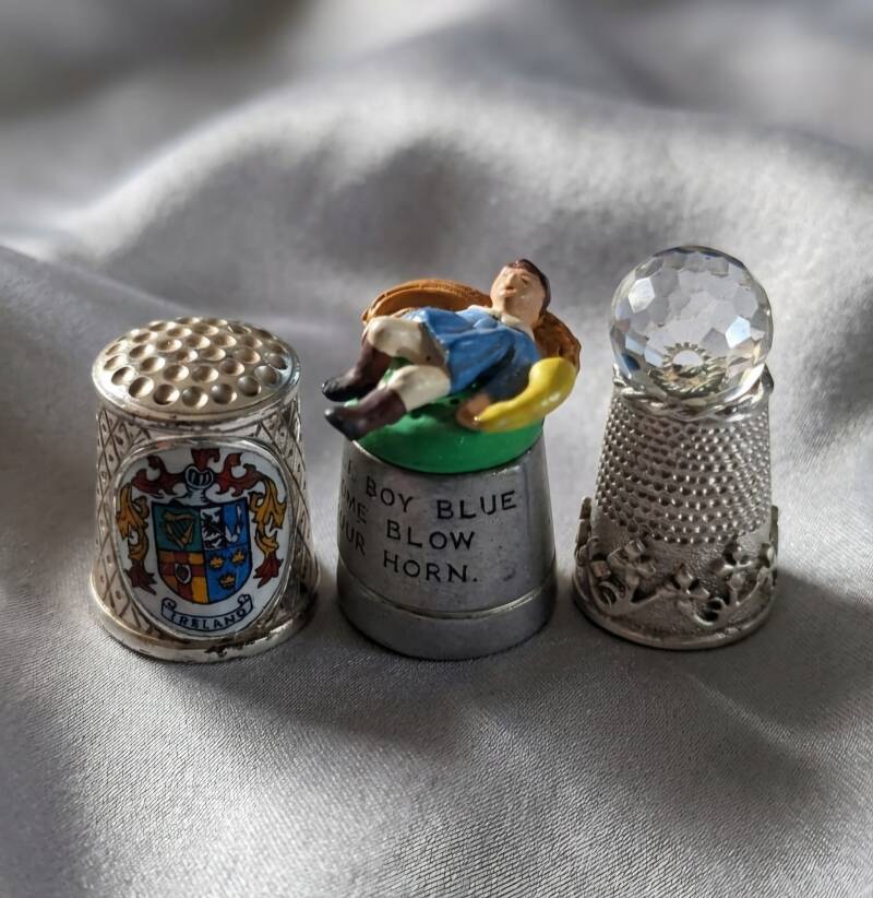 Every thimble tells a story of fingers that held it many years ago. Eyes strained over gas lights to capture each minute, delicate stitch by hand.